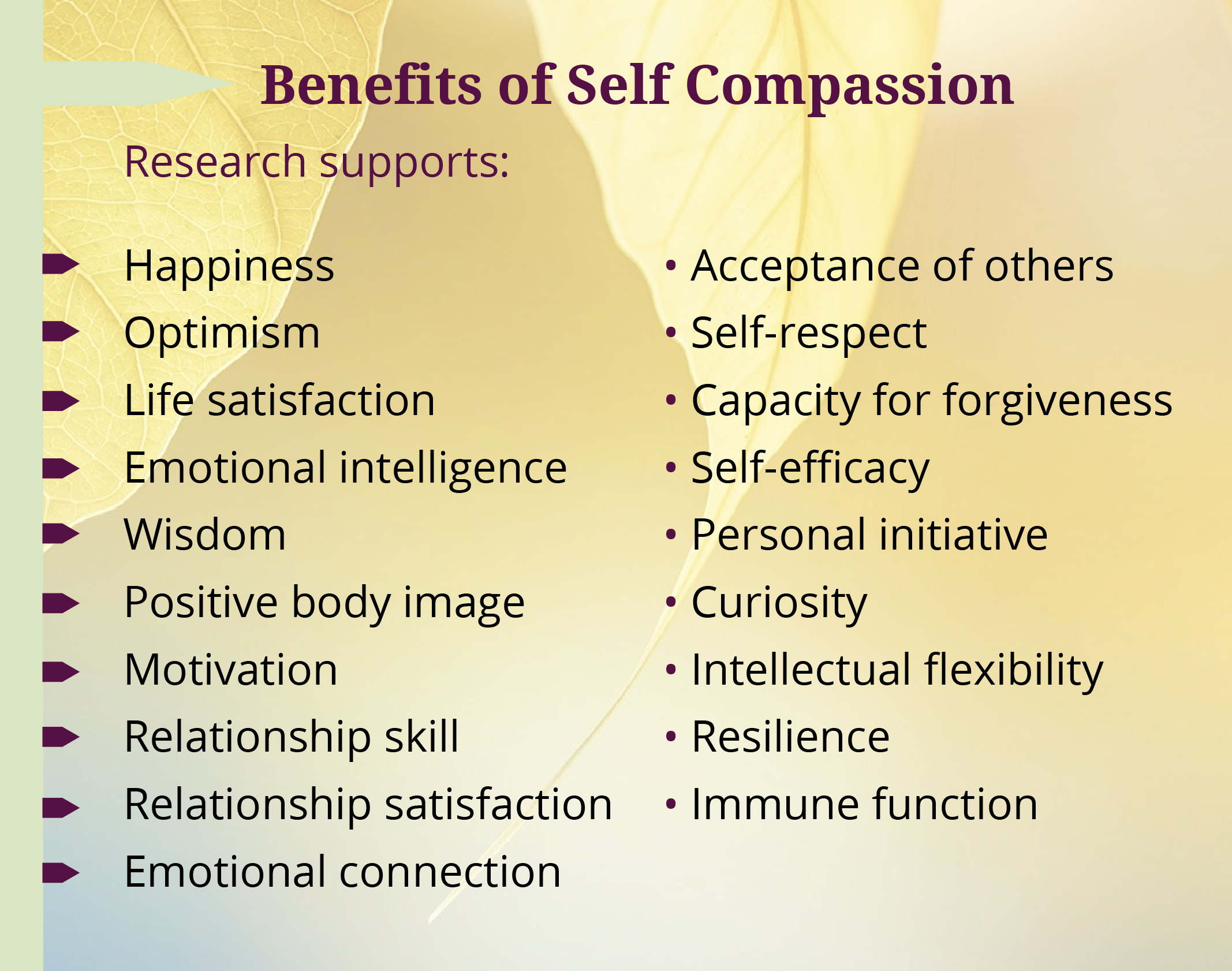 Self-compassion, a mindfulness based program that has been well researched, is part of our Lift session suite of techniques. Studies show that it creates a substantial positive change in a number of indicia of good health and wellbeing: see table D below.
